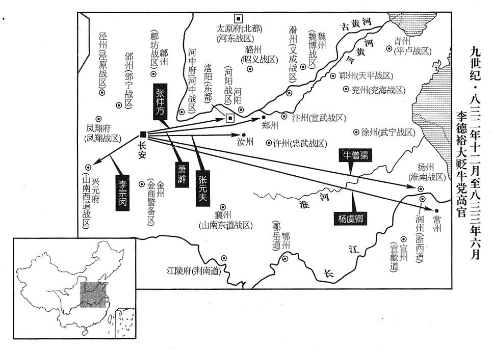 10、当初,裴度讨伐淮西战区(总部设蔡州“〔河南省汝南县〕”)变军(参考八一七年七月),特地延揽李宗闵当道政府行政执行官(观察判官),李宗闵从此渐受重用。而今,李宗闵对裴度推荐李德裕当宰相(参考八二九年八月),大不谅解,遂趁着裴度患病离职的机会,把裴度逐出中央。