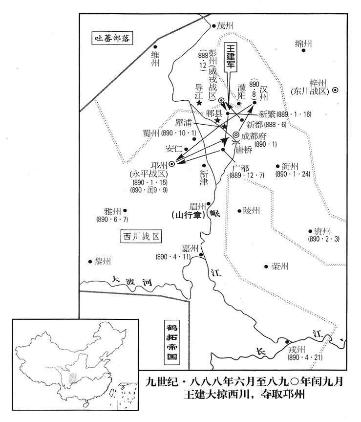 5、二月三日,西川战区资州(四川省资中县)兵变,州政府将领侯元绰生擒州长杨戡,投降王建;王建命侯元绰代理州长。